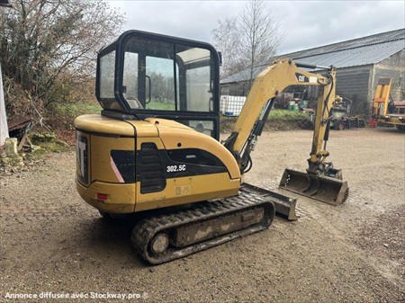 Mini-pelle CATERPILLAR type 302.5C Année : 2007 Heures compteur : 3500 Poids : 2.8 t Longueur : 4.52 m - Largeur : 1.11 m - Hauteur : 2.3 m Moteur Caterpillar S312 (18.6 kW) Lignes hydrauliques Coupleur mécanique + godets