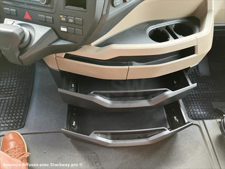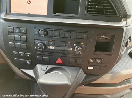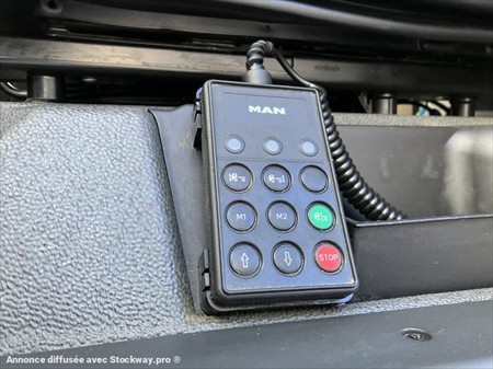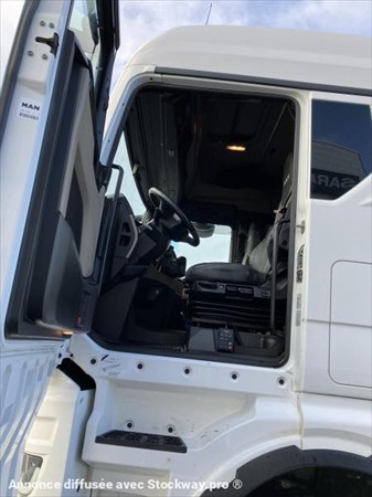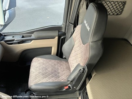 MAN TGX 18.510 LL Moteur 13 litres 510 cv Boite de vitesse auto avec ralentisseur intarder PTRA : 65 Tonnes Suspension intégrale air Principaux équipements : Eclairage avant et arrière Leds, Feux et essuie glace automatique, Clim de nuit, clim auto et chauffage additionnel, Jantes alu dura Bright, gyrophares, groupe hydraulique simple effet pour benne, carénage latéraux, Hauteur d'attelage 1.25 mètre, sellette téflon, bouton de commande arrêt et démarrage moteur plus prise de mouvement dans la portière, sièges conducteur et passager grand confort alcantara, volant cuir, GPS, CB, boitier RIO pour gestion flotte, verrouillage centralisé, une couchette, frigo, prises 12 et 24 volts, smart select, compteur numérique, prise hayon pour commande bâchage. Véhicule vendu révisé et garantie MAN chaine cinématique plus jusqu'au 09/03/2026 où 375 000 ms.