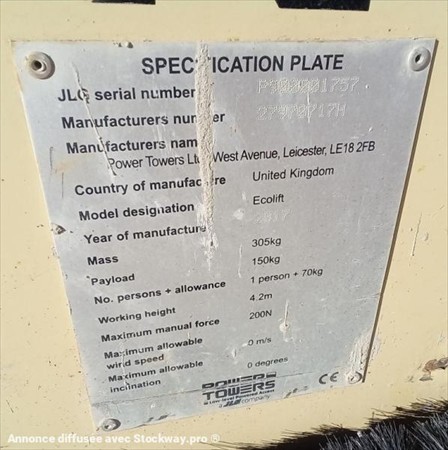 NACELLE TRACTABLE JLG ECOLIFT JLG