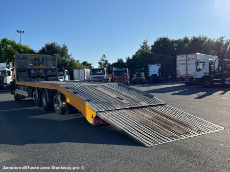 IVECO STRALIS 420 PORTE ENGINS 8X2 PNEUMATIQUE INTÉGRALE ET RETARDER 13/12/2017 306.500 KMS CARROSSERIE: Plateau CVIM Dimensions : 9.50m x 2.53m Stabilisateurs hydraulique arrière Rampe hydraulique Gyrophares arrière Gyrophares sur tablier Radiocommande pour Rampe, Treuil et Béquilles 10 Anneaux d'arrimage à droite 10 Anneaux d'arrimage à gauche 10 Anneaux d'arrimage au centre Treuil hydraulique EQUIPEMENTS : Climatisation Suspension intégrale GPS Caméra de recul Alerte de franchissement de ligne blanche Régulateur adaptatif Bluetooth Ralentisseur hydraulique Prise de force Blocage de différentiel Fermeture centralisée à distance Vitres électrique Rétroviseurs électrique chauffant Pour plus de renseignement , merci de contacter David au 06.70.37.10.83 ou consulter notre site internet www.selectpoidslourds.com