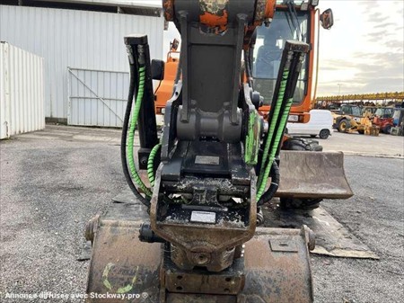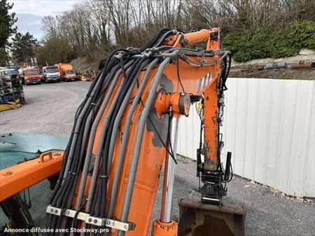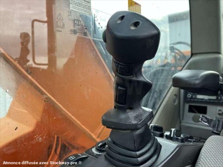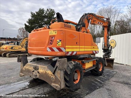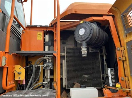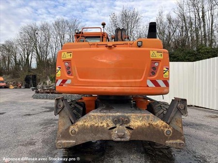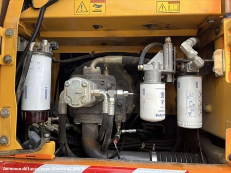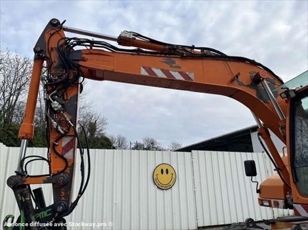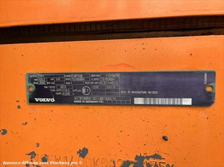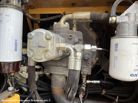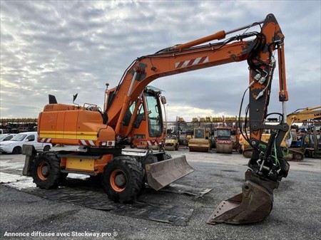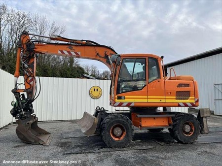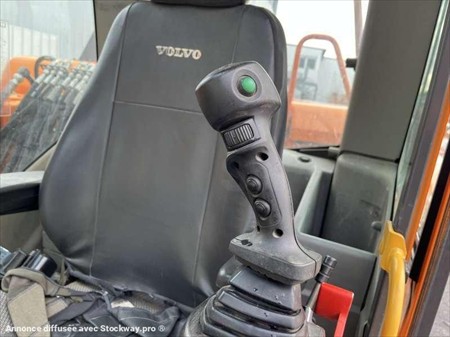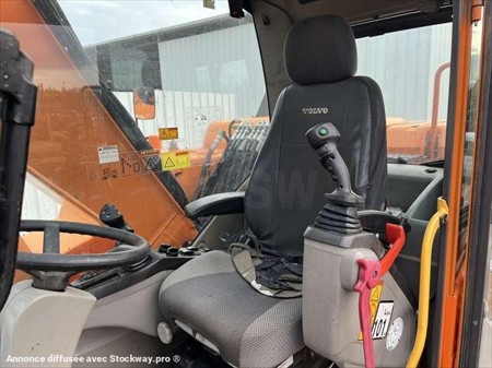 Cette pelle sur pneus de la marque Volvo est le modèle EW140D de 2012. Longueur : 7 M 50 Largeur : 2 M 55 Hauteur : 3 M 17 Poids : 16.850 kg. Taille pneus : 445/70 R 19.5 Flèche monobloc Clapets de sécurité Tilt Rotator Lignes supplémentaires Lame 2 patins Graissage automatique Caméra de recul Climatisation Moteur Volvo D4H de 105 kW (141 ch) 17.033 Heures