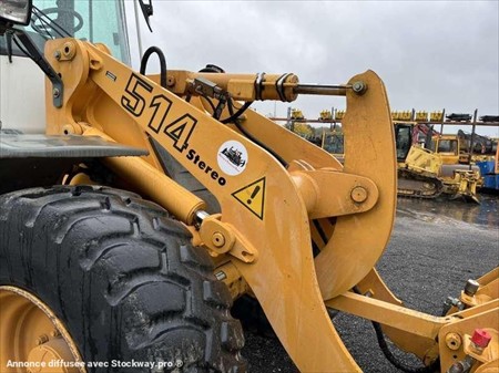 Cette chargeuse sur Pneus de la marque Liebherr est le modèle L514 Stéréo de 2006. Longueur : 6 M 50 Largeur : 2 M 40 Hauteur : 3 M 05 Poids : 7700 kg. Taille pneus : 17.5 R 25 Attache hydraulique Prise hydraulique Clapets de sécurité Capacité godet : 1500 litres Vitesse de déplacement : 30 km/h Moteur Liebherr D504T02 de 72 kW (98 ch) 2.536 heures