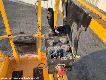 Cette nacelle de la marque Haulotte est le modèle CISEAUX COMPACT 10N de 2017. Longueur : 2 M 50 Largeur : 81 cm Hauteur : 2 M 18 Poids : 2200 kg. Hauteur de travail : 9 M 80 Hauteur plateforme : 7 M 80 Longueur plateforme : 2 M 40 Longueur plateforme étendue : 3 M 32 Largeur plateforme : 80 cm Capacité maximum : 250 kg. Vitesse de translation : 0.7/1.5/4.2 km/h 190 Heures