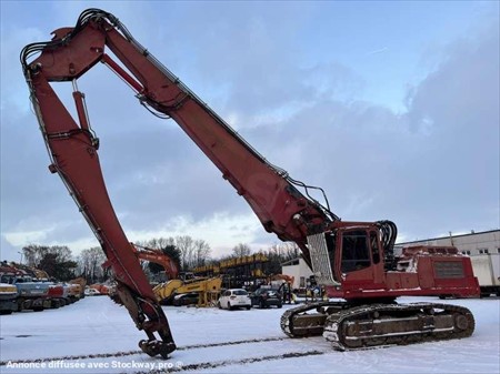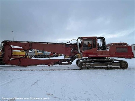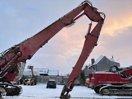 Cette pelle de démolition de la marque Liebherr est le modèle R954B HD LITRONIC de 2004. Longueur : 16 M 40 Largeur : 3 M 50 Hauteur : 3 M 68 Poids : 57 T Largeur chenilles : 600 MM Longueur bras de démolition : 25 M Bras de terrassement Double graissage centralisé Lignes hydrauliques supplémentaires Protections de cabine Protections de vérins Attache hydraulique Liebherr SW66 Moteur Liebherr D926 TI-E de 222 kW (300Ch) 11.431 Heures