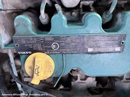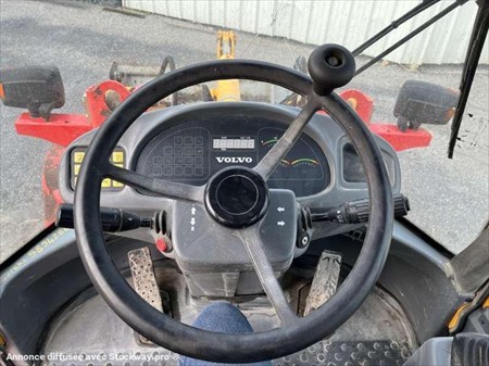 Cette chargeuse de la marque Volvo est le modèle L30B-Z/X de 2010. Longueur : 5 M 14 Largeur : 1 M 90 Hauteur : 2 M 80 Poids : 5500 kg Taille des pneus : 335/80 R 20 Godet 4 en 1 Fourche Clapet de sécurité Hauteur de déversement : 2 M 58 Vitesse de déplacement :20 km/h Moteur Volvo D3.6DC C E3 de 52 kW (70 ch) 6.696 heures