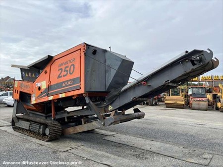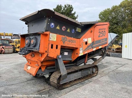 Ce broyeur primaire de la marque ARJES et le modèle IMPAKTOR 250 EVO de 2021. Hauteur de la machine : 2 M 70 Largeur de la machine : 2 M 20 Longueur de la machine : 7 M 40 Nombre d'arbres : 2 Poids en ordre de marche : 14000 kg Type : primaire Vitesse de rotation maximale : 35 tr/min Vitesse de rotation minimale : 11 tr/min Largeur convoyeur de décharge : 800 MM Hauteur de décharge : 3 M 45 Volume de trémie : 2,25 M3 Longueur des rotors : 1500 MM Diamètre des rotors : 680 MM Moteur Volvo Penta TAD572VE de 129 kW (175 cv). 1205 Heures