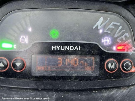 Cette mini pelle de la marque Hyundai est le modèle ROBEX 18-9 de 2018. Longueur : 3 M 84 Largeur : 98 cm Hauteur : 2 M 27 Poids : 1995 kg. Largeur chenilles : 230 MM Flèche monobloc avec déport pied de flèche Lame Chenilles rétractables Protection de vérin Moteur Mitsubishi L3E de 13.6 kW (18 ch) 3.140 Heures