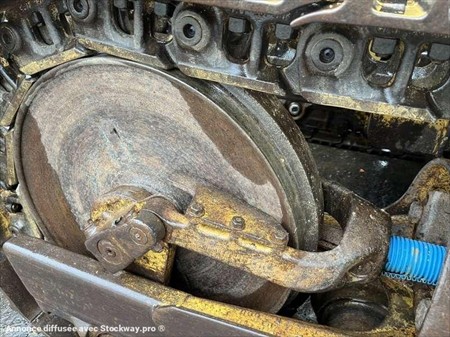 Cette chargeuse sur chenilles de la marque Caterpillar est le modèle 953 de 1982. Longueur : 5 M 90 Largeur : 2 M 26 Hauteur : 3 M 07 Poids : 13500 kg. Largeur chenilles : 385 MM Godet de 1500 Litres Hauteur de déversement avec godet basculé : 2 M 79 Moteur Caterpillar 3204 T de 82.3 kW (112 ch). 11700 Heures non garanties