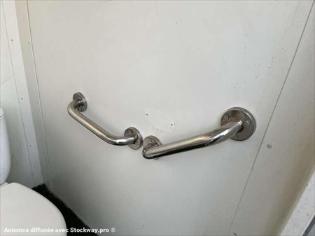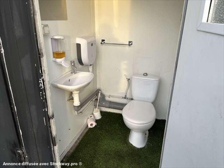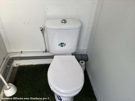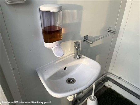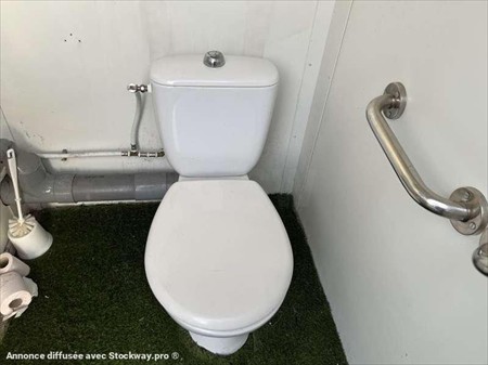Bungalow WC Longueur : 2 M 40 Largeur : 1 M 40 Hauteur : 2 M 55 Deux cuvettes Deux lavabos Deux distributeurs de papiers toilettes Deux miroirs Deux Distributeurs à savon
