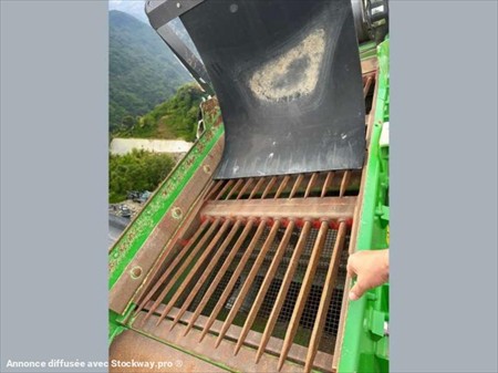 Cette cribleuse de la marque Terex est le modèle Colt 600 de 2020. Longueur : 9 M 50 Largeur : 2 M 40 Hauteur : 2 M 60 Poids : 12 T Largeur chenilles : 400 MM ALIMENTATEUR Capacité de la trémie de 3 m3 1 m de largeur Vitesse variable Taille maximale des produits d'alimentation : 300 mm CRIBLE Crible à deux étages de 2 M 34 x 1 M 17 Large gamme de supports de crible Étage supérieur - étage bofor, doigts, tôle perforée et tamis Étage inférieur - tamis et doigts TAPIS Tapis de fines de 650 mm de largeur avec hauteur de déversement de 2 M 9 Tapis de produits intermédiaires de 650 mm de largeur avec hauteur de déversement de 2 M 8 Tapis de refus de 1000 mm de largeur avec hauteur de déversement de 2 M 7 m Capacité de production : jusqu'à 280 T/H Moteur Deutz D2011 L041 de 36.4 kW (48.8 ch) 390 heures