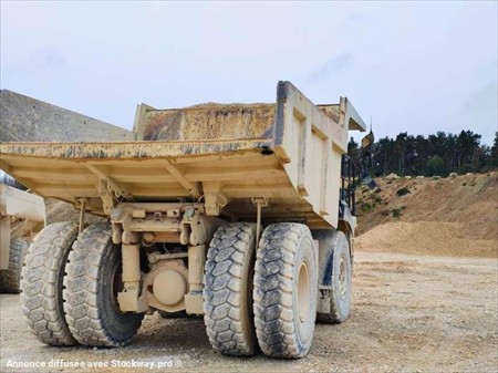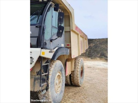 Ce dumper de la marque ASTRA est le modèle RD 32C de 2013. Longueur : 7 M 38 Largeur : 3 M 66 Hauteur : 3 M 80 Capacité de la benne à ras : 16 m3 Capacité de la benne avec dôme : 20,5 m3 Charge utile : 32 T PTAC : 54 T Poids à vide : 22 T Moteur IVECO CURSOR 1 de 280 kW (381 ch). 12.169 heures 50.689 km