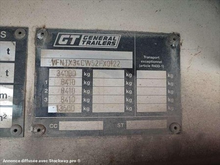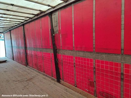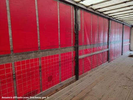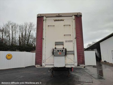 Cette Tautliner de la marque Trailor de 3 essieux est de 2005. Longueur : 13 M 95 Largeur : 2 M 55 Hauteur : 4 M 03 Poids : 6880 kilos PTAC : 34 T Charge utile : 27120 kg Taille pneus : 385/65 R 22.5 Suspensions à air. Les dimensions intérieurs : Hauteur : 2 M 80 Largeur : 2 M 50 Longueur : 13 M 60
