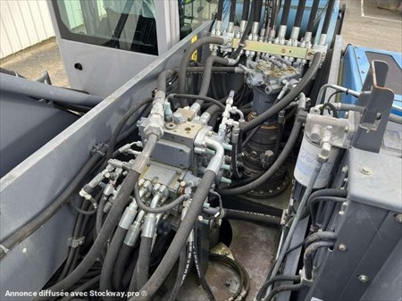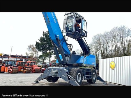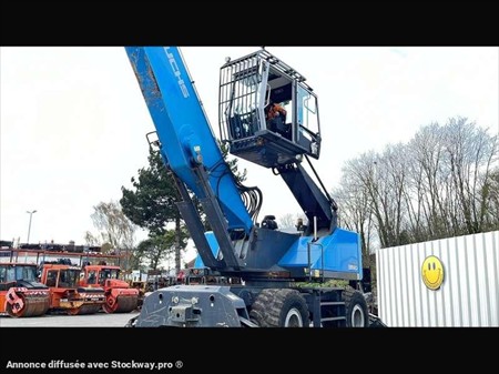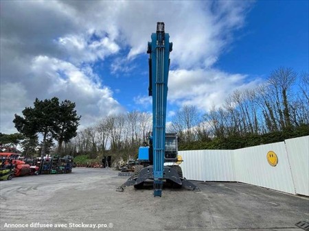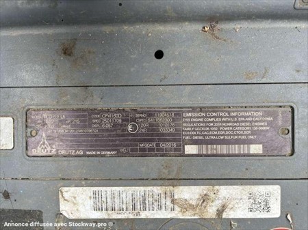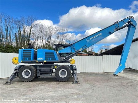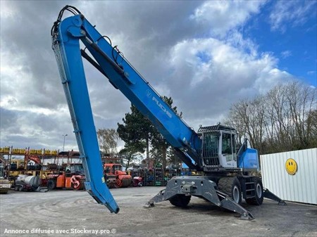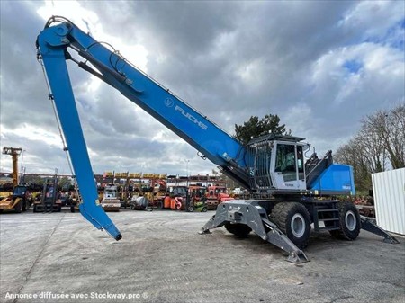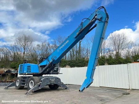 Cette pelle industrie de la marque Fuchs est le modèle MHL 350 de 2016. Largeur : 3 M 46 Hauteur : 4 M 02 Poids : 37800 kg. Taille pneus : 650/65 R 25 Longueur flèche : 9 M 10 Longueur balancier : 5 M 35 Clapets de sécurité Protections de vérins Protections cabine Caméra de recul Graissage centralisé automatique Cabine élévatrice 4 stabilisateurs Crochet d'attelage Pommier Climatisation Moteur Deutz TCD 6.1 L6 de 215 chevaux. 1854 Heures