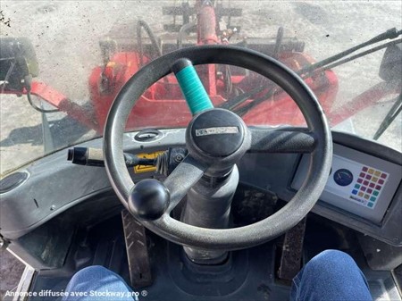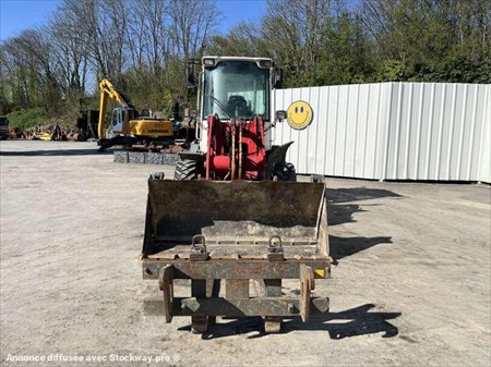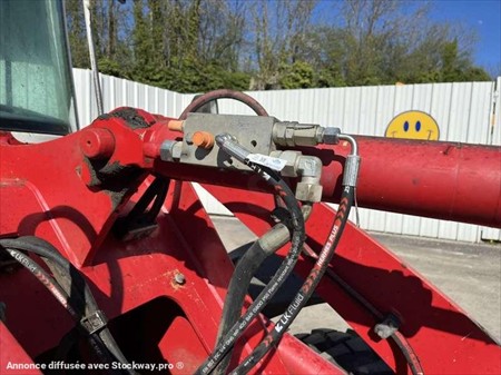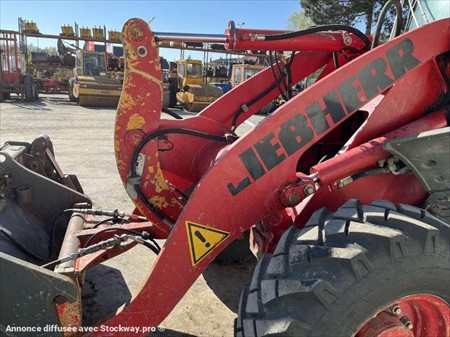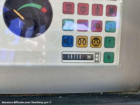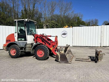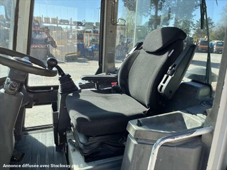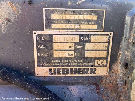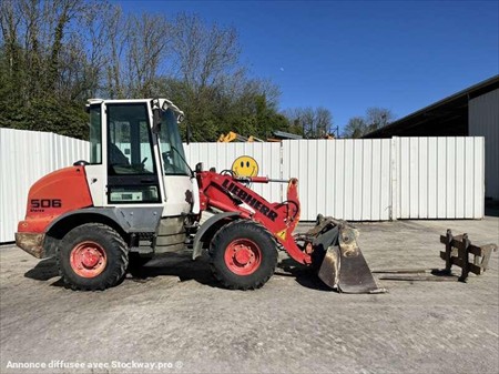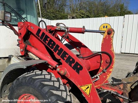 Cette chargeuse sur pneus de la marque Liebherr est le modèle L506 STEREO de 2008. Longueur : 5 M 46 Largeur : 2 M 10 Hauteur : 2 M 88 Poids : 5180 kg. Taille pneus : 12.5 - 18 Godet 4 en 1 Capacité du godet : 0.7 M3 Fourche Clapets de sécurité Climatisation Vitesse déplacement : 20 km/h. Moteur Liebherr S404-T-00 de 42 kW (57 ch). 8730 Heures