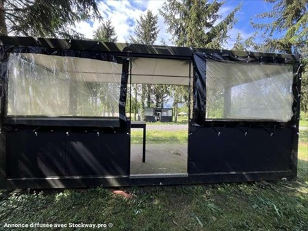 Bungalow de 15 M2. Les dimensions extérieures sont : Longueur : 6 M 03 Largeur : 2 M 43 Hauteur : 2 M 75 Les dimensions intérieures sont : Longueur : 5 M 90 Largeur : 2 M 31 Hauteur : 2 M 34
