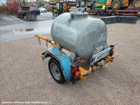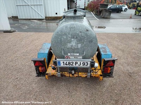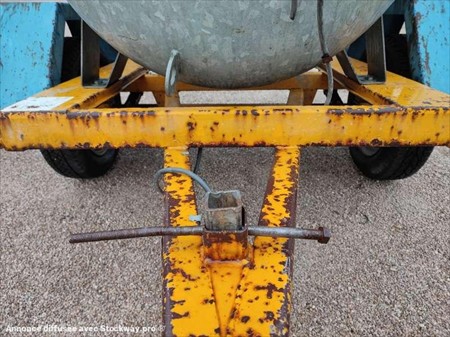 Cette semi citerne à eau est de la marque Courant. Longueur : 2 M 79 Largeur : 1 M 41 Hauteur : 1 M 45 Poids : 250 kg PTC : 750 kg Taille des pneus : 155 R 13 Capacité : 500 litres