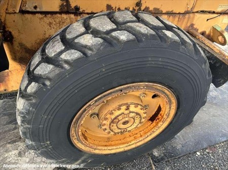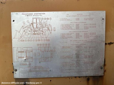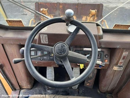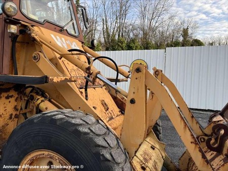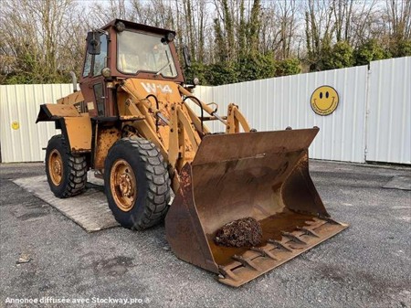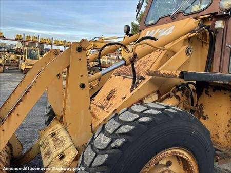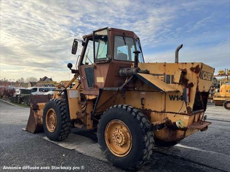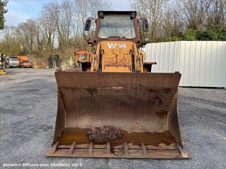 Cette chargeuse sur pneus de la marque CASE est le modèle W14 de 1983. Longueur : 6 M 07 Largeur : 2 M 25 Hauteur : 3 M 05 Poids : 14.665 kg. Taille pneus : 15.5 R 25 Capacité godet : 1530 Litres Vitesse de déplacement : 40.2 km/h Moteur Case A336BD de 62 kW (85 ch) 2.700 Heures