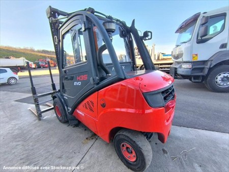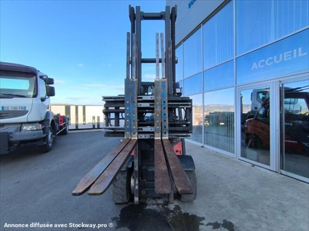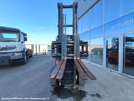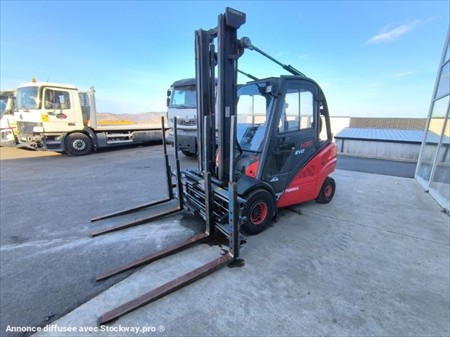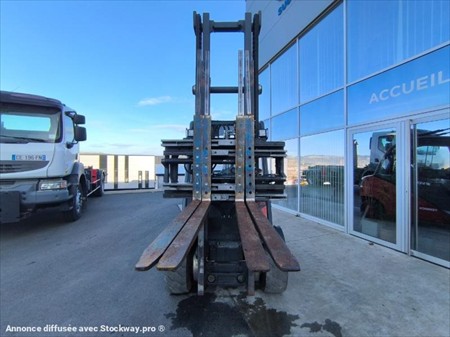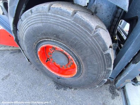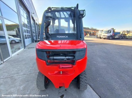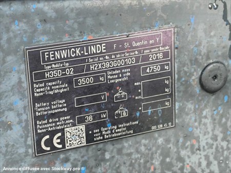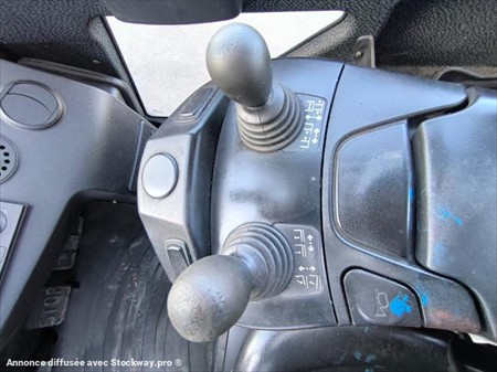 Année : 2016 Marque : Fenwick Modèle : H35D-02 TDL Positionneur de fourches ( Largeur fourches : 8 cm ) Ecarteur de fourches ( largeur max 1.96m ) Nombre d’heures : 12 271.6 H compteur Masse à vide : 4.75 Tonnes Capacité de chargement 3.5 Tonnes Hauteur Maximum : 3.80 M Mât Duplex Moteur Fenwick Puissance : 36 KW Pneus AV MICHELIN : 250/75R12 Pneus AR MICHELIN : 6.50R10 Matériels en très bon état !