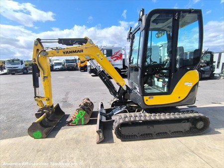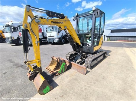 Année : 2017 Marque : Yanmar Modèle : SV 22 Horamètre : 1754 h compteur Poids : 2.2 Tonnes Largeur lame bull : 1.4 M Cabine Moteur Yanmar Puissance : 13.4 kW Attache Morin M1 Attache rapide mécanique Translation Hydrostatique Chenilles Caoutchouc Patins 250 M/M Flèche Monobloc Déport pied de flèche Ligne auxiliaire Lame Bull Rétroviseurs Phare de travail Vendu avec 3 godets : curage 1m, terre 40 cm, tranché 30 cm BRH en supplément 2800E Matériels en très bon état !