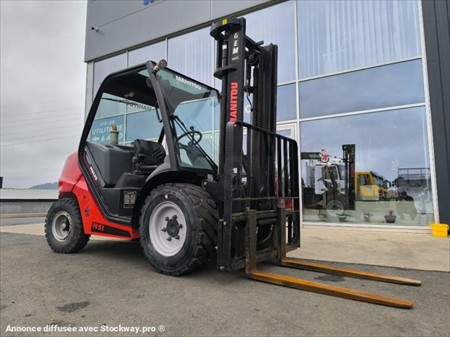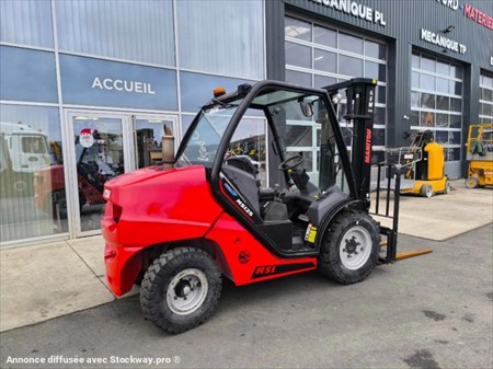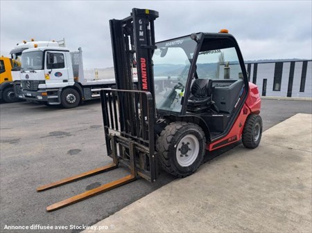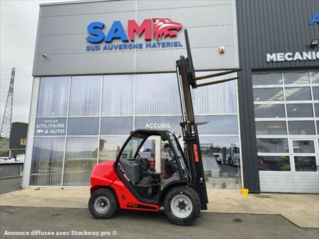 Année : 2021 Marque : Manitou Modèle : MSI 25 DK Nombre d’heures : 3875 H compteur Masse à vide : 4.045 Tonnes Capacité de chargement 2.5 Tonnes Hauteur Maximum : 3.30 M Mât Duplex Moteur Kubota 4 Cylindres Turbo Puissance : 37 KW Pneus AV : SOLIDEAL 300-15 Pneus AR : 7.00-12 BKT Pneus chambre PPS Phares de travail AV Matériels en très bon état !