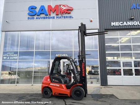 Année : 2022 Marque : Manitou Modèle : MI 25 D Nombre d’heures : 794 H compteur Masse à vide : 4.0 Tonnes Capacité de chargement 2.5 Tonnes Hauteur Maximum : 3.30 M Mât Triplex Moteur perkins Puissance : 37.4 KW Pneus AV : 7.00.12 Pneus AR : 6.00.9 Matériels en très bon état !