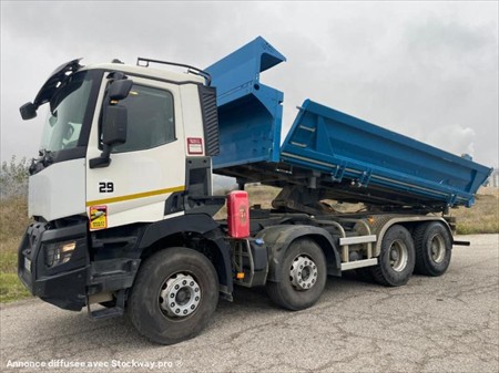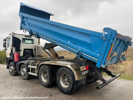 Camion benne Bibenne Ridelle latérale hydraulique + Porte universelle + Trappes8x4Pneus AV BRIDGESTONE 13R22.5 Quasi neufs