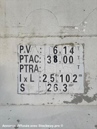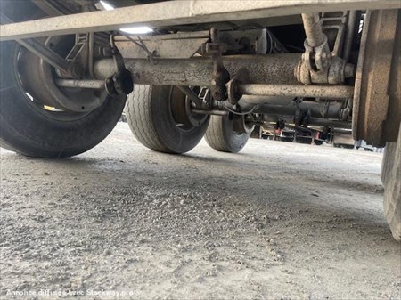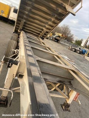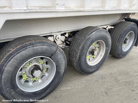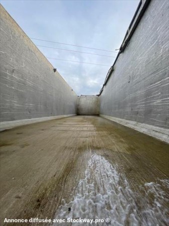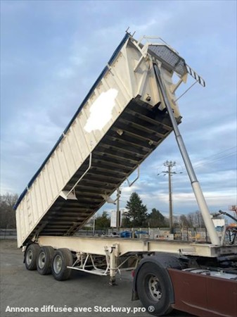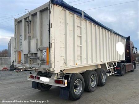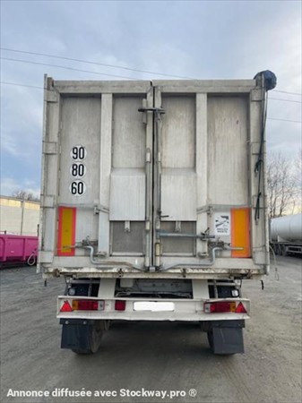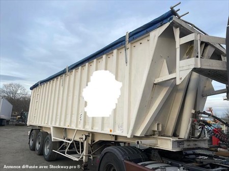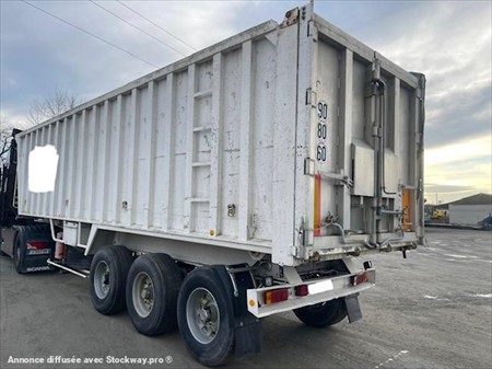 ABS, 3 essieux, alu renforcé coté de 5mm fond de 7mm, suspension mécanique, frein à tambours, bâchage, volume 50m3, porte universelle, 2 trappes.