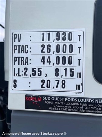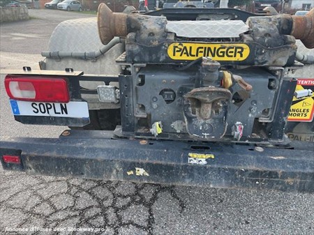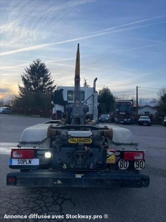 Boite automatique, climatisation, frein MX, bras Palfinger 20T coulissant, doubles verrouillages, crochet + DFR, BAE hydraulique, caméra de recul, blocage de différentiels, empattement 3m90.
