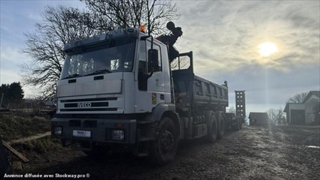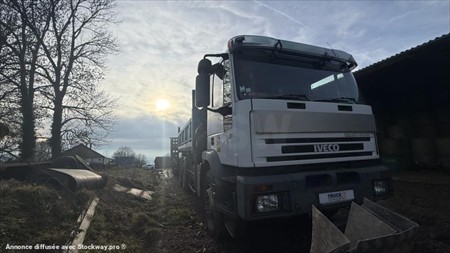 IVECO EUROTRAKKER 340cv Vente export uniquement Disponible en mai 2026 Date de mise en service : 18/06/1999 Km : 220 000 Châssis : WJME2NPT00C060452 PTAC : 26 000 kg / PTRA : 44 000 kg / PV : 14 980 kg Empattement : 3820 mm Moteur 340cv Boite de vitesse manuelle Pneumatiques essieu avant et arrière : 13R22.5 Suspension avant et arrière : mécaniques Crochet Grue PALFINGER Type : PK16000 Année de fabrication : 1996 Benne MEILLER Longueur : 5200 mm total Longueur sans pente : 5000 mm Largeur à plat : 2150 mm Largeur au total : 2300 mm Hauteur ridelle : 850 mm Contrôle technique : 23/10/2026 Limiteur de vitesse : 20/10/2026 Tachygraphe : 20/10/2027 Tous nos véhicules ne sont pas visibles sur parc, contactez-nous pour connaitre la localisation et convenir d’un rendez-vous. Solutions de financement clés en main avec nos partenaires de confiance. Certains véhicules peuvent encore être stickés, nous assurons l’anonymisation par logiciel. Reprise de votre véhicule possible – contactez-nous !