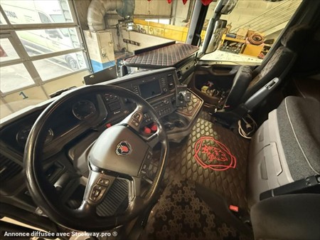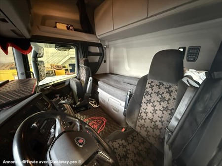 SCANIA SUPER R500 A4X2NA Date de mise en service : 07/03/2023 Km : 350 000 Châssis : YS2R4X20009311162 PTAC : 19 000 kg / PTRA : 44 000 kg / PV : 8 382 kg Moteur 500 cv – Euro 6 Boite de vitesse automatique Blocage de différentiel Suspensions essieux avant et arrière : pneumatique Pneumatiques essieux avant et arrière : 315/80 Réservoirs : 615 dm3 + 525 dm3 Cabine CR20H Siège conducteur ventilé et chauffant Siège passager Rabattable Poste de radio Premium Ordinateur de bord 7 pouces Climatisation automatique Couchette inférieur extensible : 800 – 1 000 mm Réfrigérateur Climatisation autonome Toit ouvrant électrique Webasto Tachygraphe : 06/10/2026 Limiteur de vitesse : 14/04/2026 Contrôle technique : 17/04/2026 Tous nos véhicules ne sont pas visibles sur parc, contactez-nous pour connaitre la localisation et convenir d’un rendez-vous. Solutions de financement clés en main avec nos partenaires de confiance. Certains véhicules peuvent encore être stickés, nous assurons l’anonymisation par logiciel. Reprise de votre véhicule possible – contactez-nous !