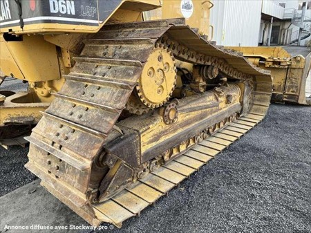 Ce bulldozer de la marque Caterpillar est le modèle D6N LGP de 2004. Longueur : 5 M 35 Largeur au niveau des chenilles : 3 M 01 Hauteur : 3 M 25 Poids : 19.554 kilos Largeur chenilles : 840 MM Longueur lame avec rallonges : 4 M 05 Longueur lame sans rallonges : 2 M 99 Caméra de recul Moteur Caterpillar 3126 de 194 kW (250 ch) 14.253 Heures