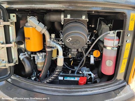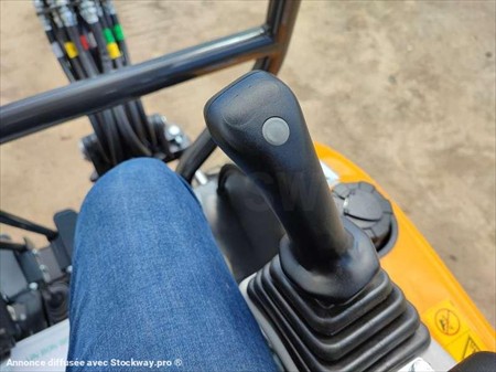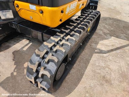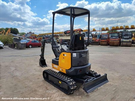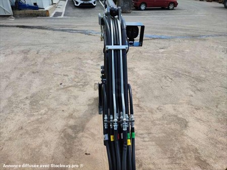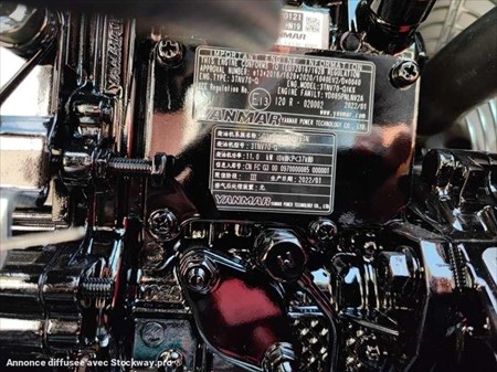 Cette mini pelle de la marque Kato est le modèle VXE HD 17 de 2022. Longueur : 3 M 38 Largeur : 98 CM Hauteur : 2 M 35 Poids : 1715 kg. Largeur chenilles caoutchouc : 230 MM Châssis rétractable Lame Cabine canopy Attache rapide Morin, Lignes hydraulique supplémentaires Déport pied de flèche. Moteur Yanmar 3TNV70-QIKX de 10.5 kW (14 ch). 10 Heures