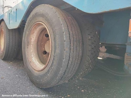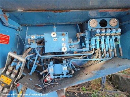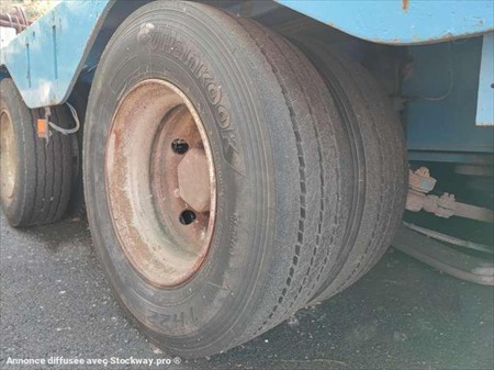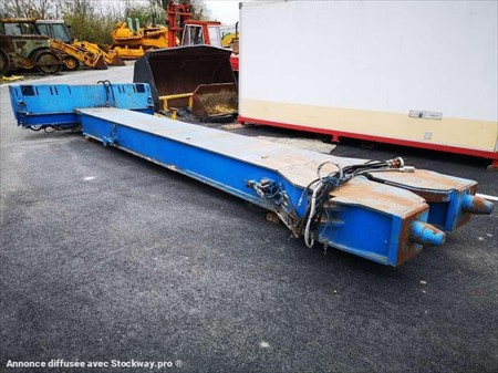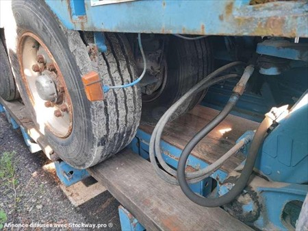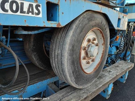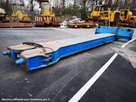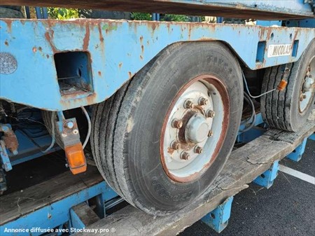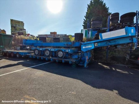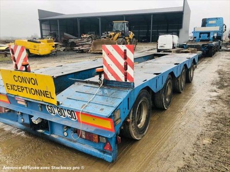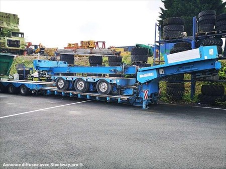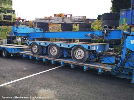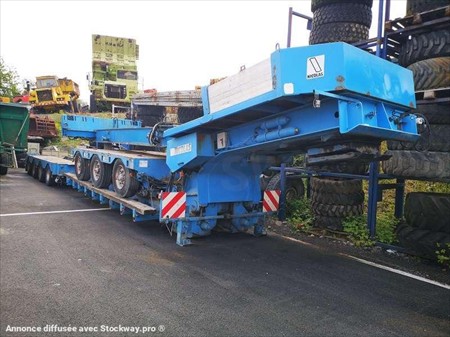 Ce porte engin de la marque Nicolas 7 essieux. Largeur : 2 M 75 Poids a vide total : 18 T 050 PTAC total de 37.500 KG PTAC exceptionnel : 60 T Chargement avant et arrière Bi-selle 3 essieux Poutre hydraulique extensible jusqu’à 17 m Graissage centralisé Direction et suspension Hydrauliqe