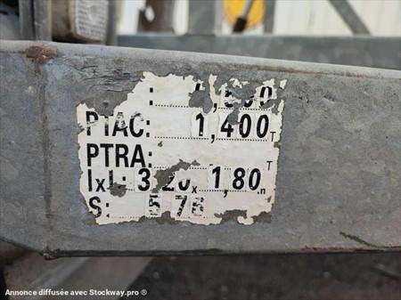 Cette remorque porte touret de la marque Mecanorem est de 1989. Longueur : 3 M 20 Largeur : 1 M 80 Hauteur : 1 M 75 Poids : 500 kg PTAC : 1400 kg Charge utile : 900 kg Taille des pneus : 185/75 R 14 C Timon à anneau Barre pour un touret de 80 cm 5 positions Hauteur max pour touret : 1 M 50
