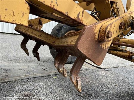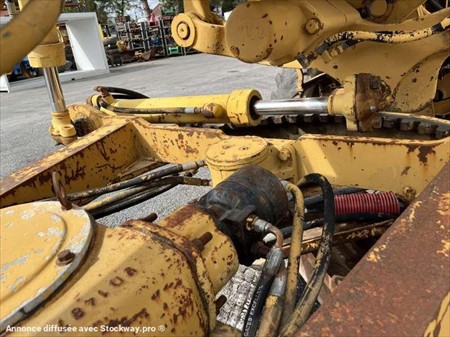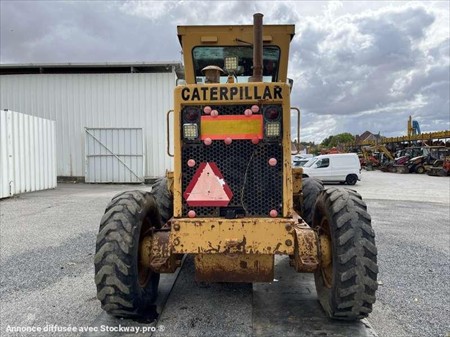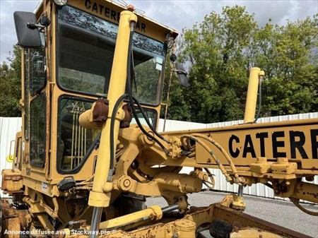 Cette niveleuse de la marque Caterpillar est le modèle 120G de 1984. Longueur : 7 M 80 Largeur : 2 M 40 Hauteur : 3 M 30 Poids : 11600 kg. Taille pneus : 13.00 - 24 Lame centrale de 3 M 65 Scarificateur 5 dents Moteur Caterpillar 3304DI de 93 kW (126 ch) 15.900 Heures environs
