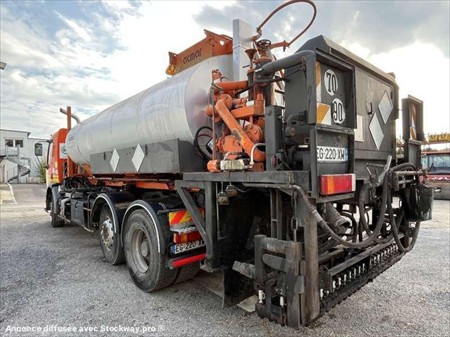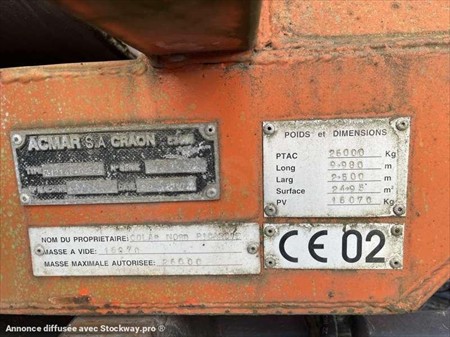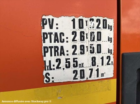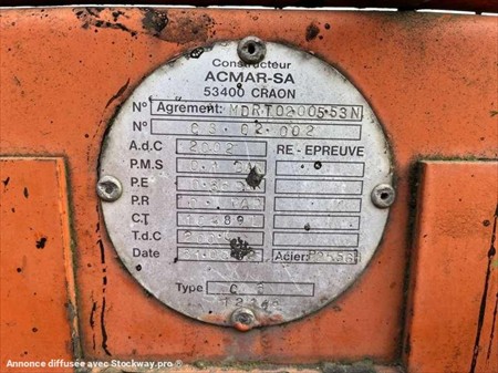 Ce camion Ampliroll de la marque Renault est le modèle Premium 370-26 équipé d'une Bouille Acmar de 2002. Longueur : 9 M 98 Largeur : 2 M 55 Hauteur : 3 M 55 Poids à vide : 10.320 kg. Taille pneus : 315/80 R 22.5 PTAC : 26 T PTRA : 29.500 kg Suspensions à lame à l'avant Suspensions à air à l'arrière Equipement ampli roll Guima Poly benne Bouille Acmar 625 SA d'une capacité de 10.500 litres Boite de vitesse mécanique 460.581 km