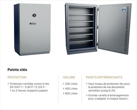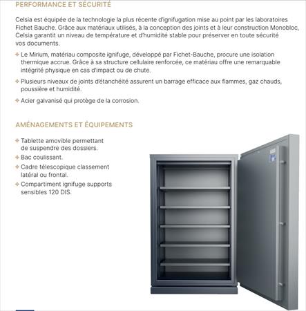 · Celsia est équipée de la technologie la plusrécente d’ignifugation mise au point par les laboratoires Fichet- Bauche. Grâceaux matériaux utilisés, à la conception des joints et à leur constructionMonobloc.