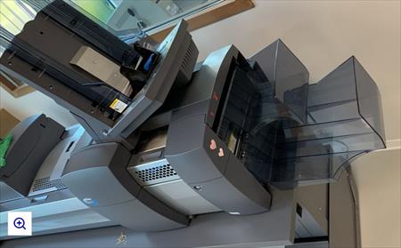 Capacité de chargement : Le système de base comprend des modules de feuilles haute capacité (jusqu'à 1000 feuilles par plateau, avec option de doubler à 2000 par module, jusqu'à 4000 au total) et un chargeur d'enveloppes haute capacité de 500 unités.
