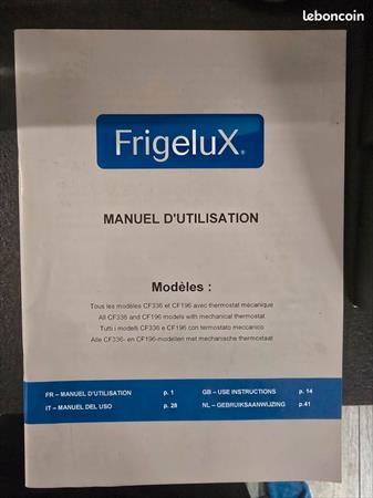 Je vends un réfrigérateur professionnel vitrine FRIGELUX, en parfait état de fonctionnement et esthétique.Utilisé en cave à vin, matériel propre, entretenu et fiable.Idéal pour commerce, cave, bar, restaurant, snack, épicerie fine.🔹 Froid ventilé🔹 Porte vitrée🔹 Clayettes réglables🔹 Thermostat mécanique🔹 Fonctionne parfaitement🔹 Aucun défaut visuelVisible sur place.À venir récupérer sur rendez-vous.Prix : 250 € à débattre