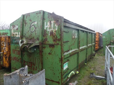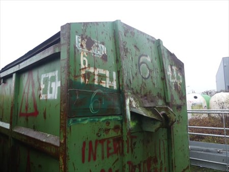 Container ouvert 30m³ Marque : Ecoman Longueur : 620 cm Largeur : 238 cm Hauteur : 260 cm Numéro interne vendeur (Ref) : 6 État : à reconditionner Ancien container fermé