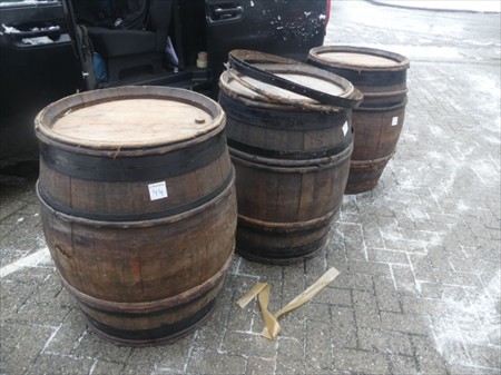 Tonneaux en chêne décoratifs Quantité : +/- 3 En bois de chêne Remarques : Enlèvement sur Rendez-vous