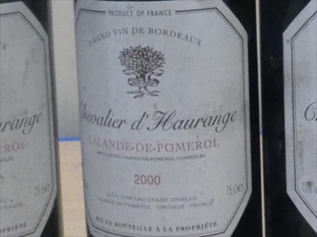 Bouteille de vin 75 cl Marque : Chevalier d'Haurange 2000 Quantité : +/- 5 Remarques : Enlèvement sur Rendez-vous