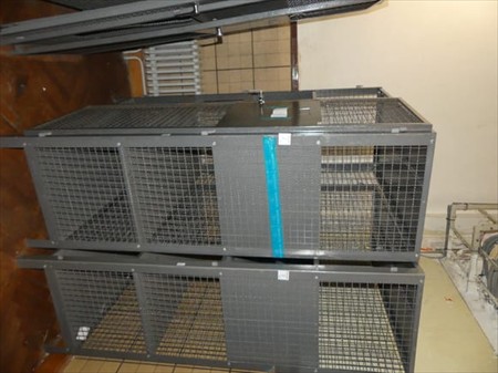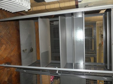 Armoires grillagées 2 portes Longueur : 122 cm Largeur : 62 cm Hauteur : 200 cm Quantité : +- 4 Non Inclus : Contenu Certaines Avec ou sans clé
