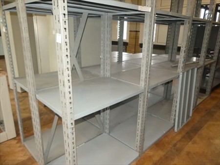 Etagère métalliques démontables Longueur : 90 cm Largeur : 60 cm Hauteur : 254 cm Quantité : +- 8 Non Inclus : Contenu
