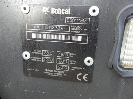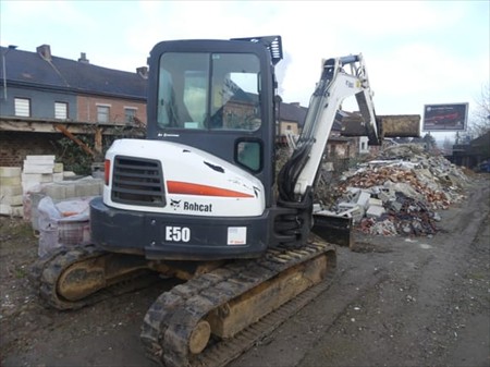 Pelle sur chenilles Marque : Bobcat Modèle : E50 Année : 2010 Heures : 4132 Longueur : 530 cm Largeur : 196 cm Hauteur : 255 cm Poids : 4860 kg Puissance : 36 kW État : Non Testé Numéro de série : AHHE11233