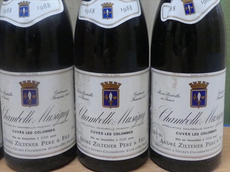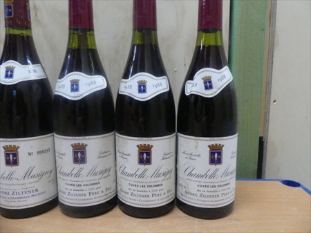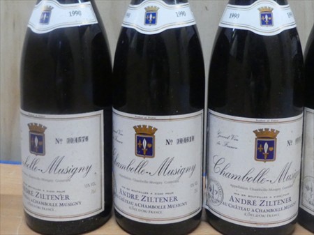 Bouteilles de vin 75 cl Marque : Château Ziltener Modèle : Chambolle-Musigny Quantité : +/- 6 3 x Chambolle-Musigny 1988 3 x Chambolle-Musigny 1990 Dans sa caisse en bois Remarques : Enlèvement sur Rendez-vous