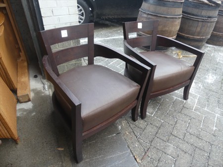 Fauteuil design art déco Marque : Promemoria Quantité : +/- 2 Structure en bois foncé Assise en cuir brun foncé Remarques : Enlèvement sur Rendez-vous
