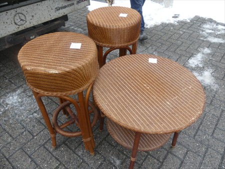 Tabouret et table basse en osier tressé Marque : Vincent Scheppard, VS Lloyd Louve2 tabourets signé Vincent Scheppard