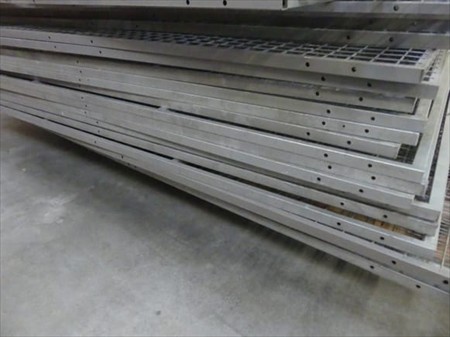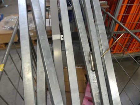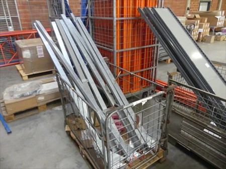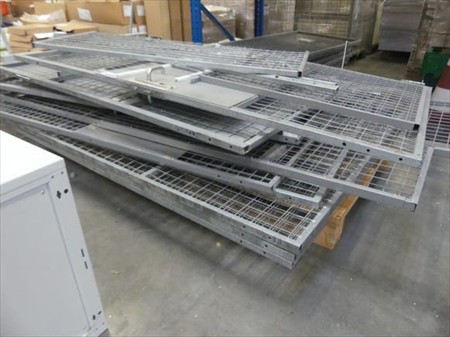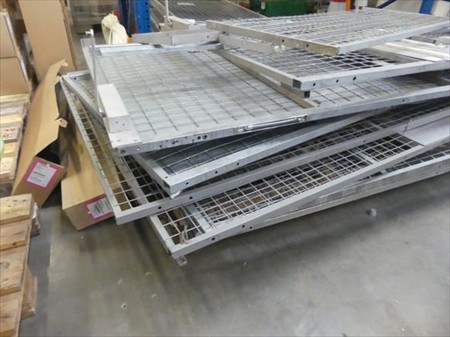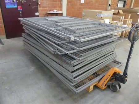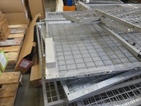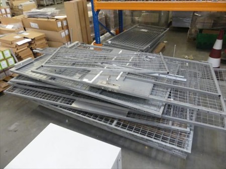 Cloison grillage Marque : Troax Non Inclus : Berceau Dimensions diverses Composition +- 40 Barrières Dimensions de 150 cm x 225 cm et 100 cmx 220 cm 4 portes diverses Piquets Lot reparti sur 2 palettes et 1 berceau