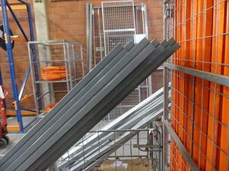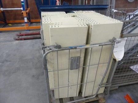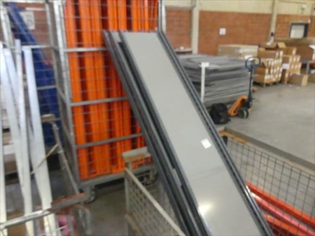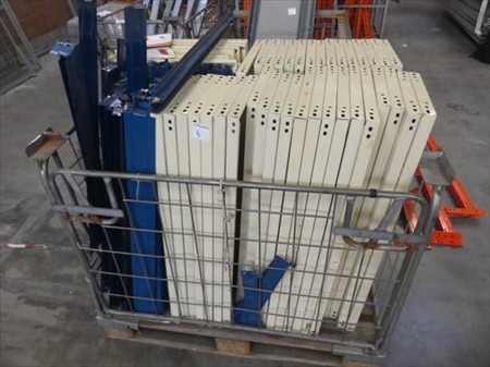 Eléments pour étagères Non Inclus : Berceaux Echelles +- 6 x 34 cm x 227 cm +- 40 x plateaux de 98 cm x 30 cm divers lisses Lot reparti dans 2 berceaux Remarques : Visite conseillée